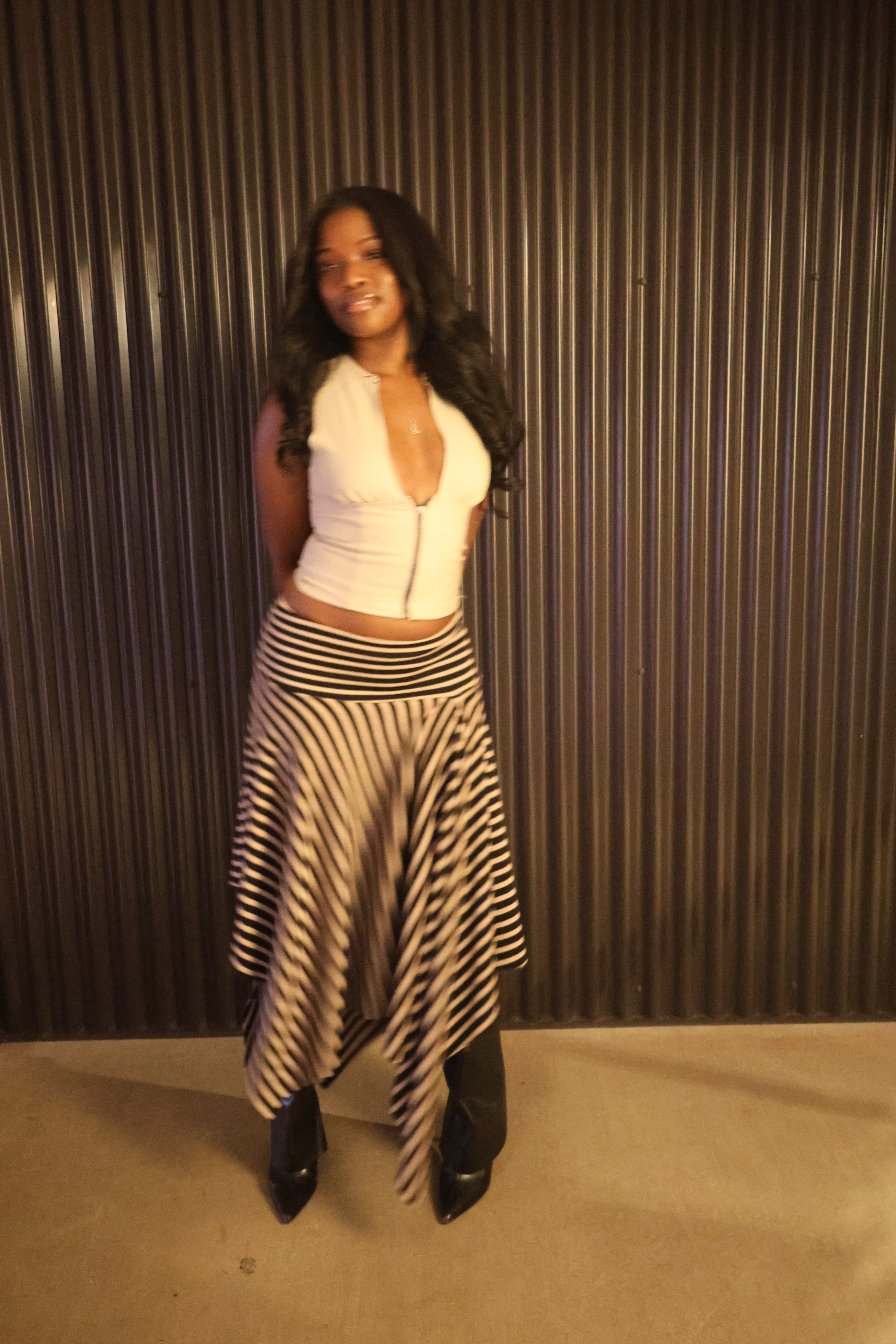 Shop our striped maxi skirt available for pre-order. A limited-release statement piece designed for effortless style and versatile wear.